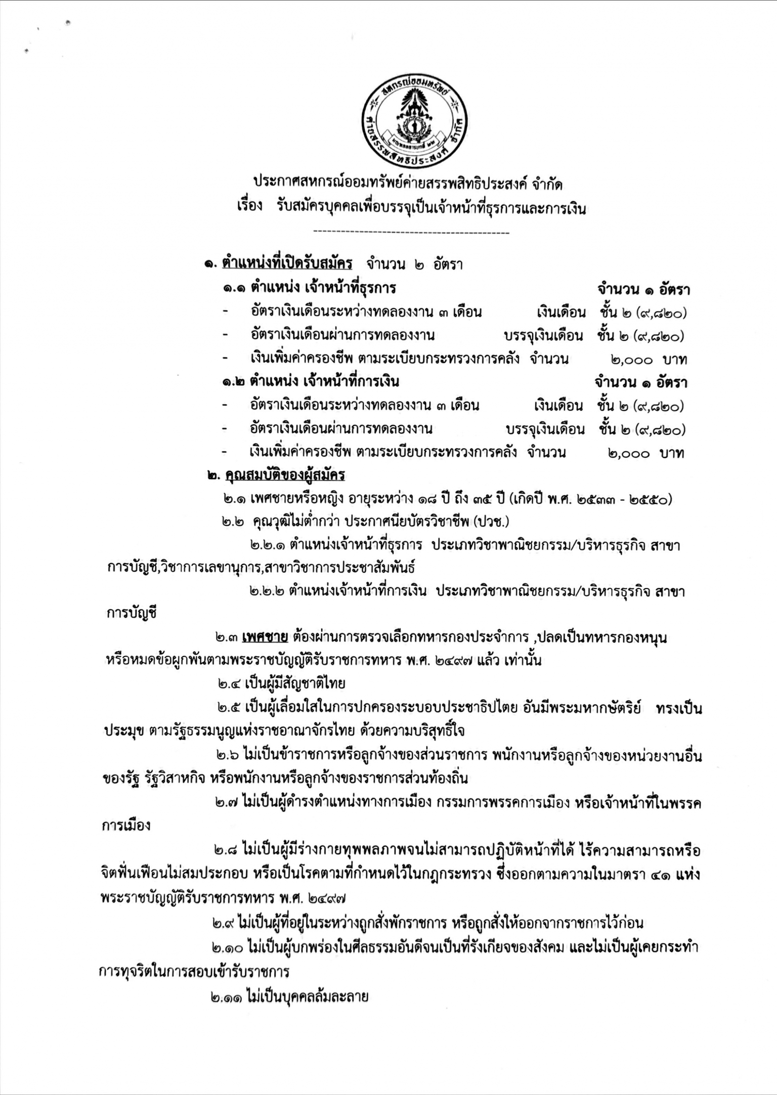 กิจกรรมโครงการสหกรณ์สัญจร เพื่อสร้างความรู้ความเข้าใจและสร้างความเชื่อมั่นในการดำเนินงานของสหกรณ์ออมทรัพย์ค่ายสรรพสิทธิประสงค์ จำกัด และรับสมัครเข้...